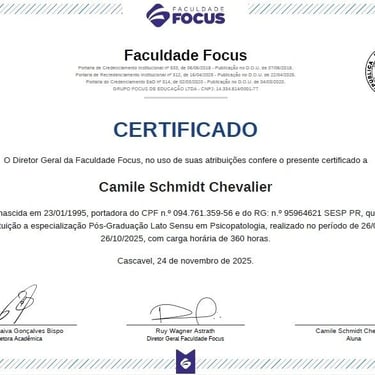 Psicóloga Camile Schmidt Chevalier, CRP-08/26154